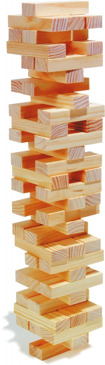 Bois naturel. Il s´agit d´ôter les bâtonnets de la tour et de les replacer en haut sans que la tour ne s´écroule. Entraîne la patience et la motricité.